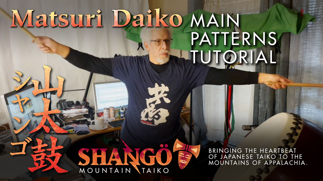 Matsuri Daiko “A-B” Jiuchi Pattern Tutorial – For Shang̈ö Mountain Taiko trainees studying Matsuri Daiko. Playing this A-B pattern is a way to participate and perform the song while still learning the Main Pattern. Includes basic Naname-uchi form. The kuchishoga, the Main, “B” and combined “A-B” patterns, and how they fit into the main lines of Matsuri Daiko.